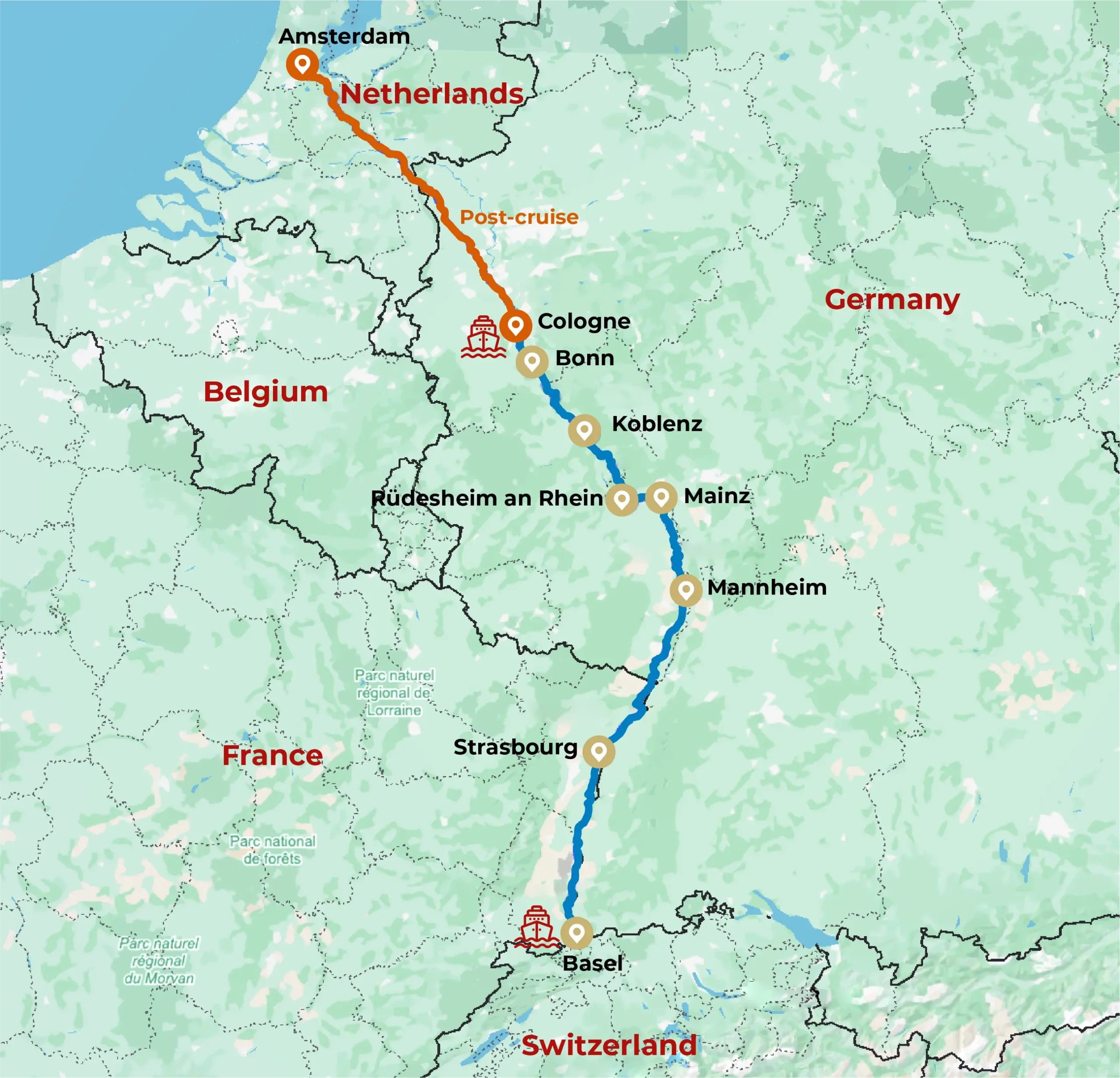 Guests will have additional time to enjoy the city at a relaxed pace before we continue our journey along the Rhine later this evening.
