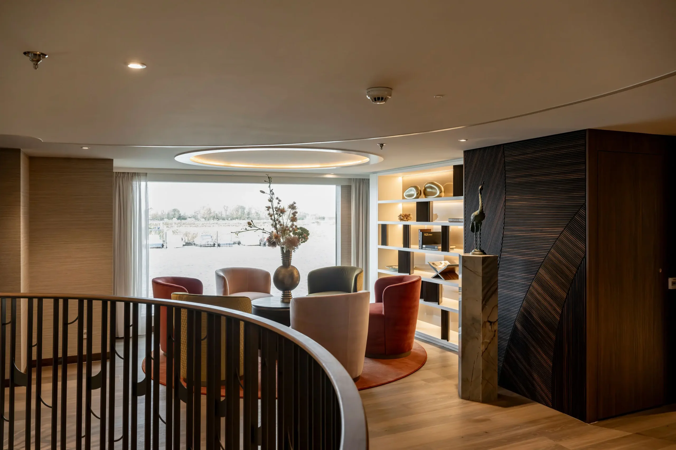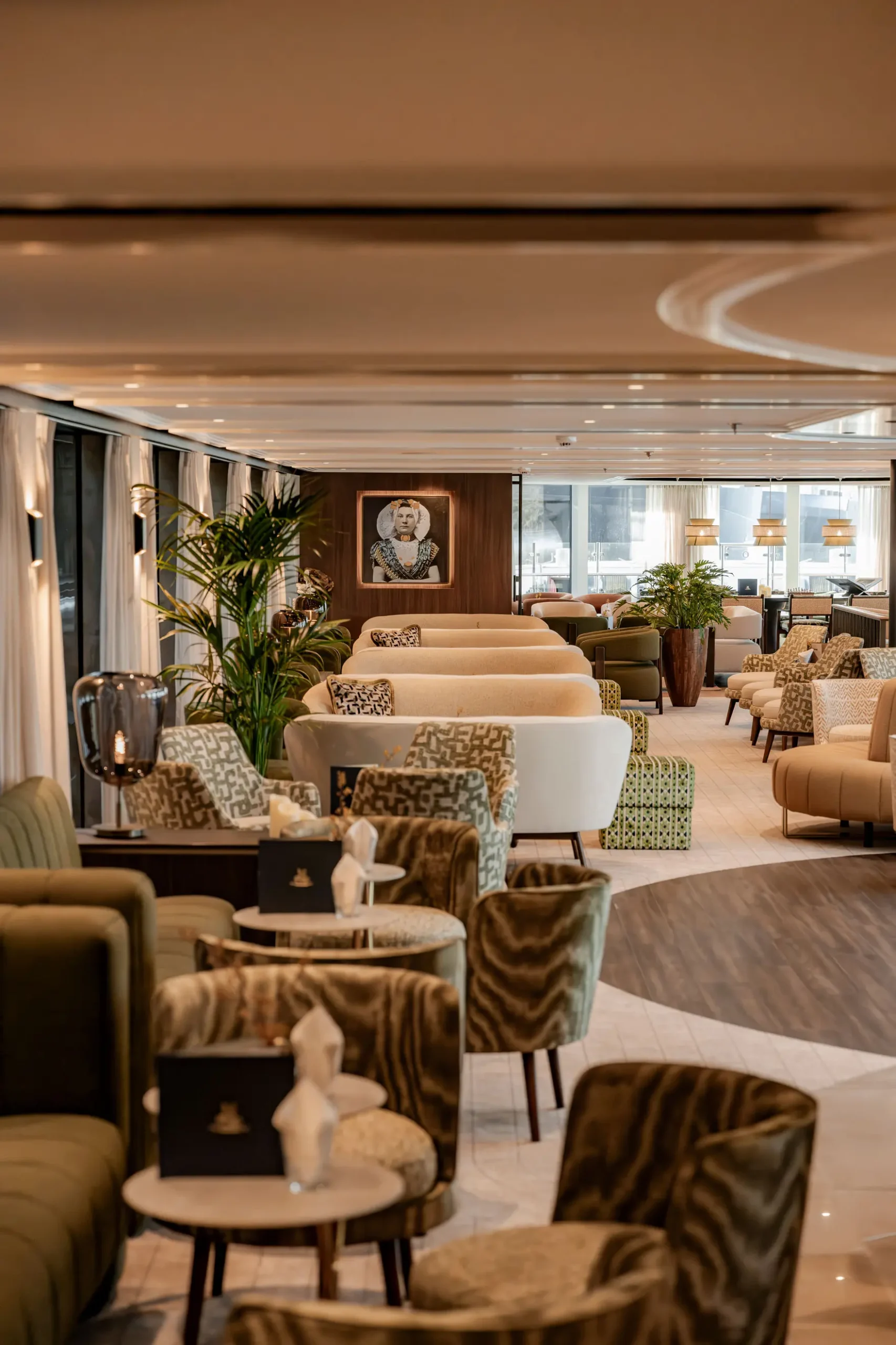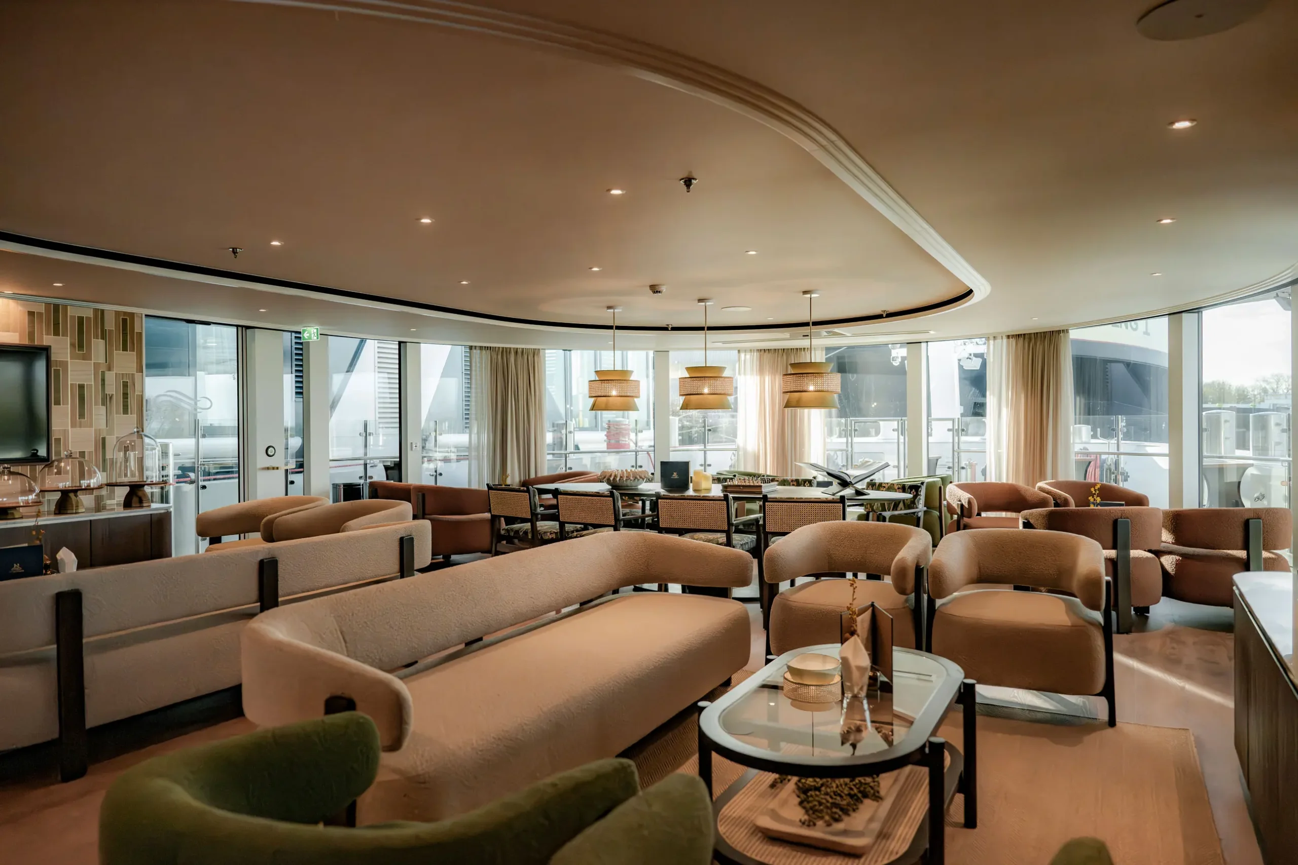 The streamlined shapes of the Lobby give The Nobleman an elegant, yacht-like presence from the moment you step aboard. This welcoming space seamlessly blends style and function, setting the tone for the refined experience ahead.