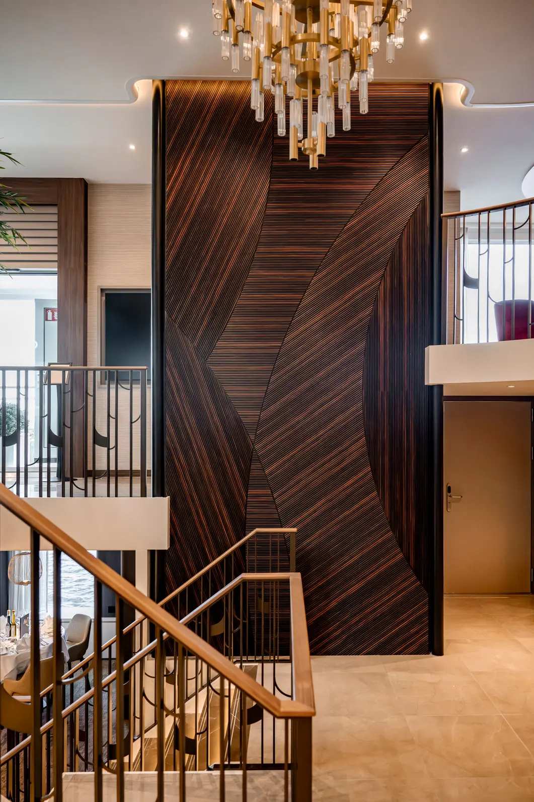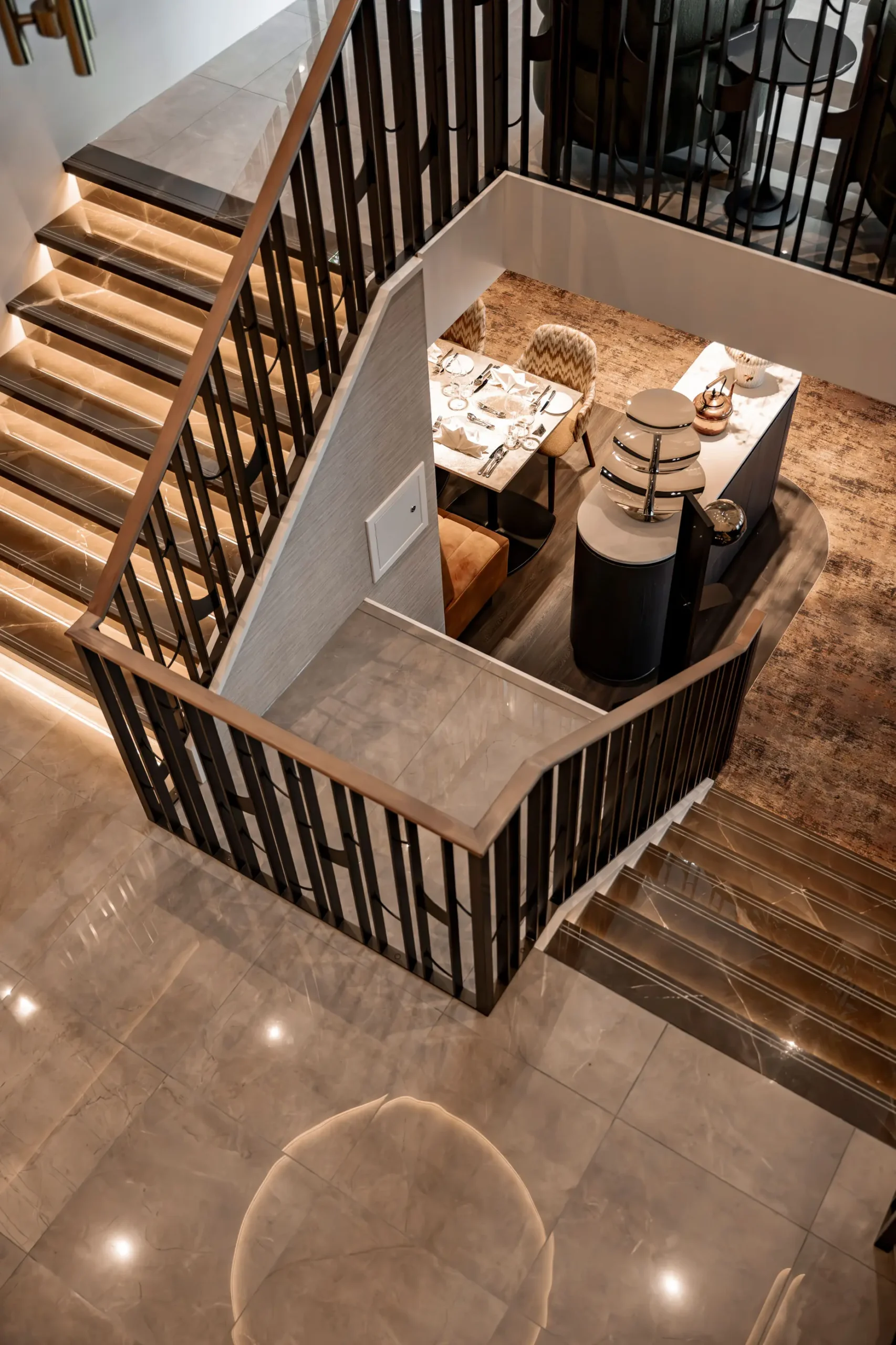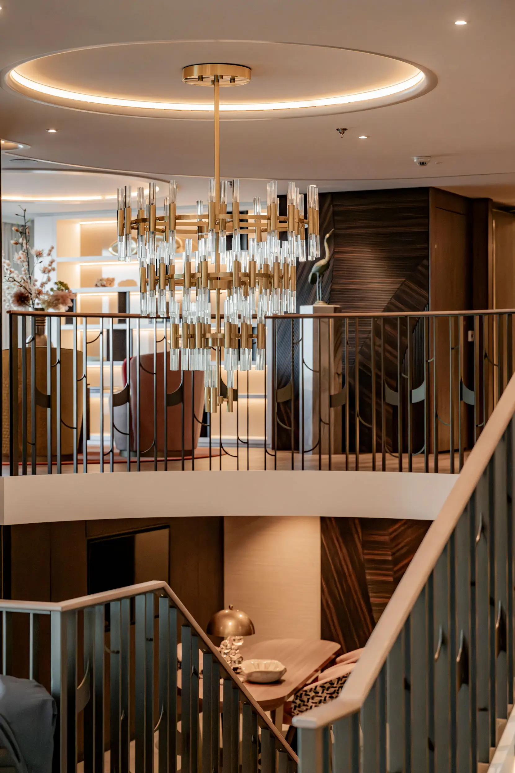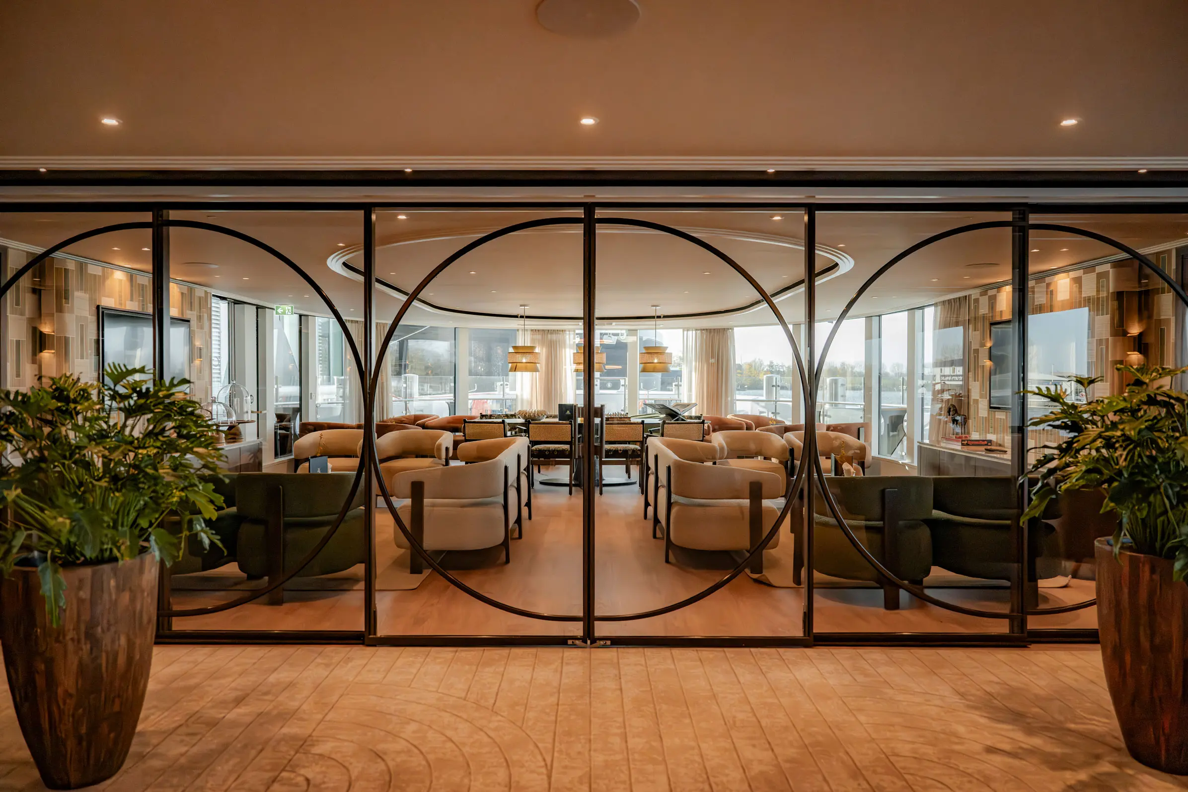 The streamlined shapes of the Lobby give The Nobleman an elegant, yacht-like presence from the moment you step aboard. This welcoming space seamlessly blends style and function, setting the tone for the refined experience ahead.
